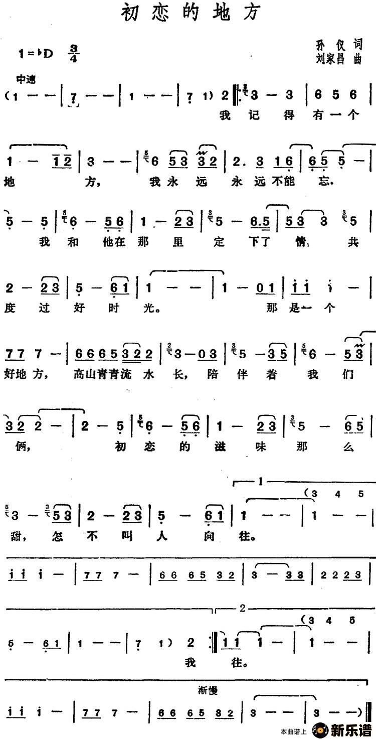 > 邓丽君演唱金曲:初恋的地方最新曲谱