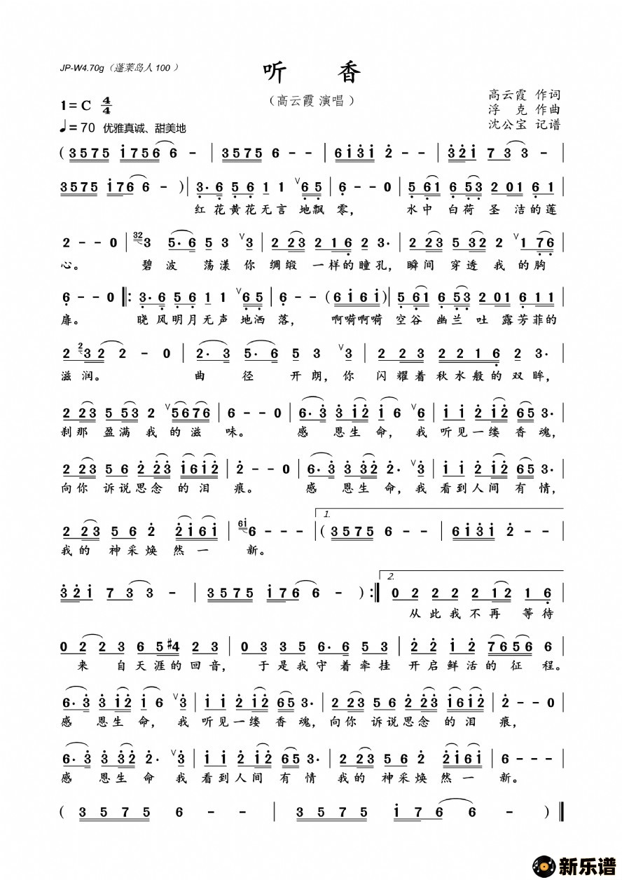 《听香》最新曲谱 高云霞-沈公宝制谱
