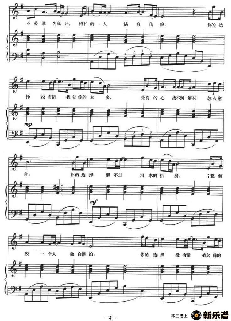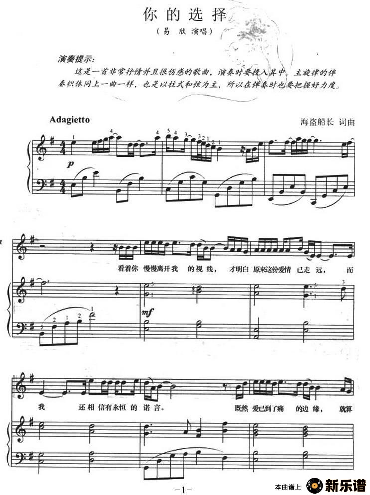 易欣演唱的你的选择歌词,你的选择最新曲谱.