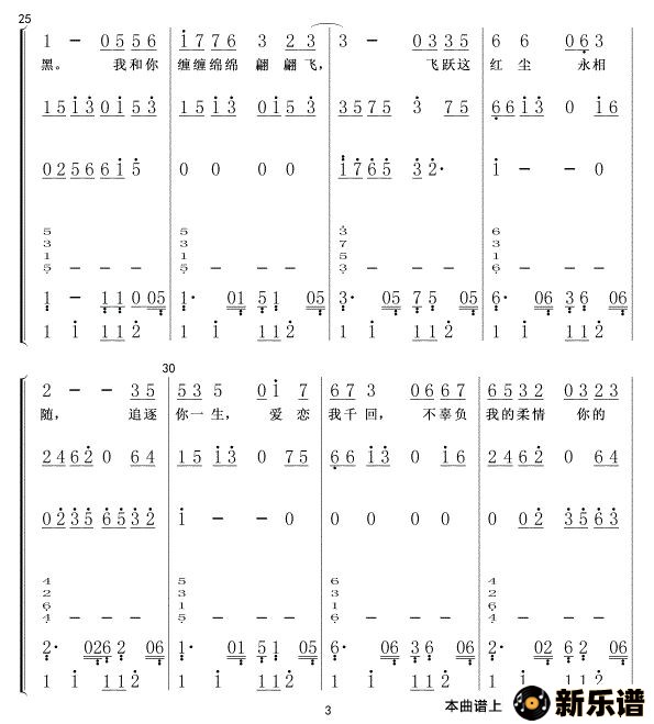 《两只蝴蝶(总谱)》最新曲谱 庞龙