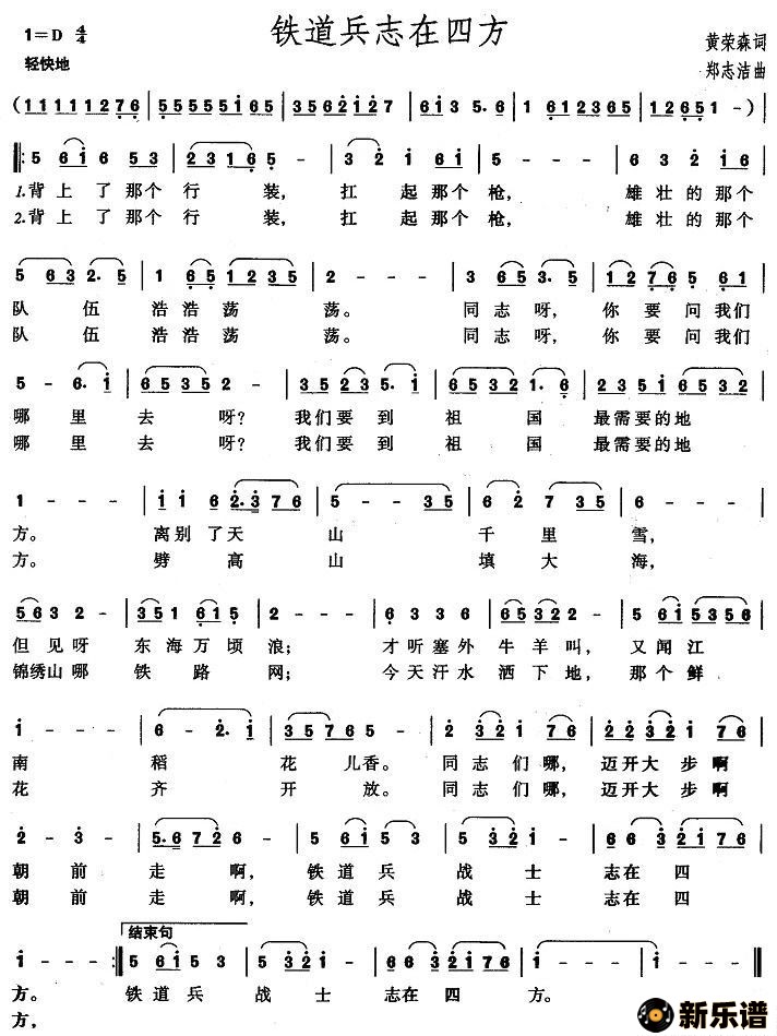 演唱的铁道兵志在四方歌词,铁道兵志在四方最新曲谱.