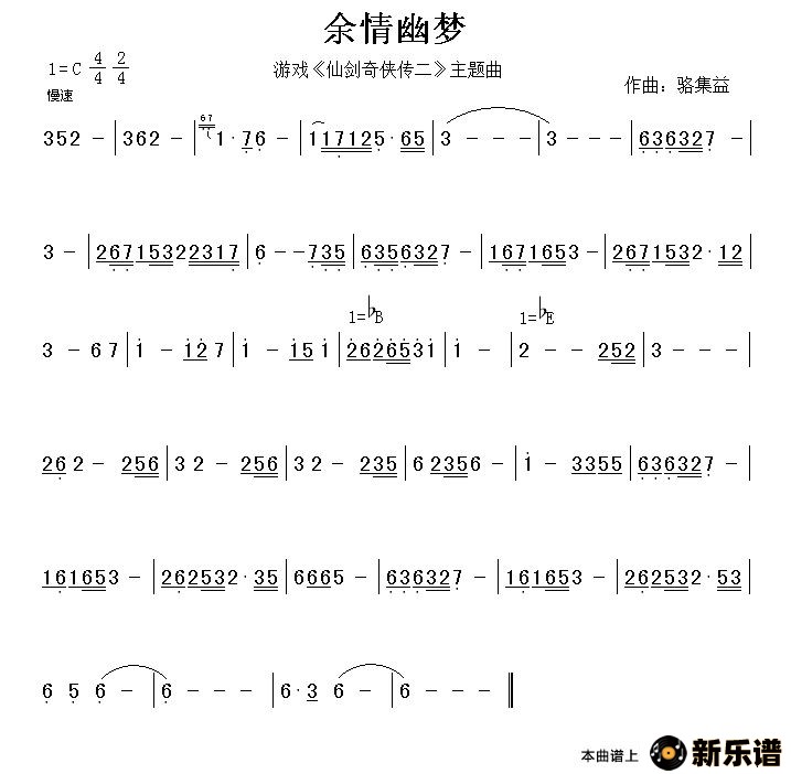 水龙吟·余情幽梦(《仙剑奇侠传二》游戏主题歌曲)最新曲谱