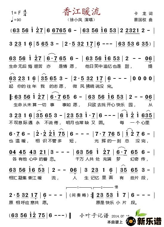 徐小凤演唱的香江暖流歌词,香江暖流最新曲谱.