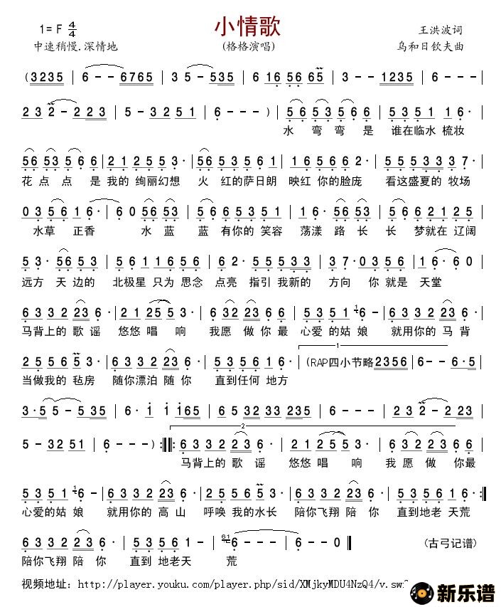 格格演唱的小情歌歌词,小情歌最新曲谱.