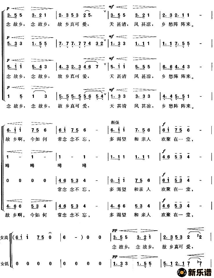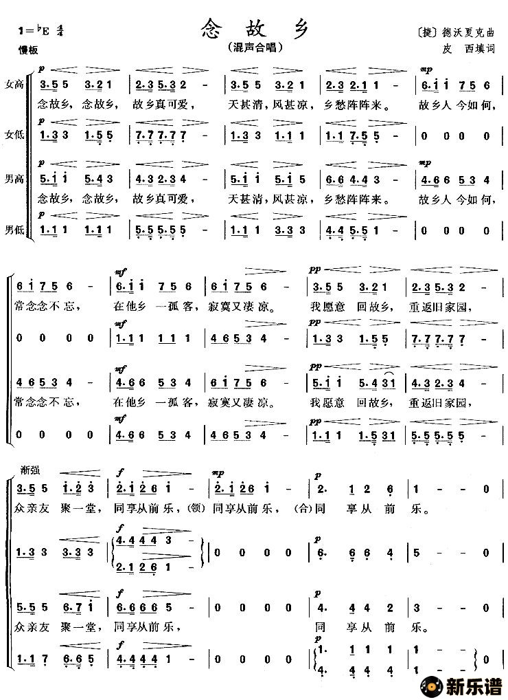 作词:皮西 填词 作曲:[捷]德沃夏克(混声合唱)