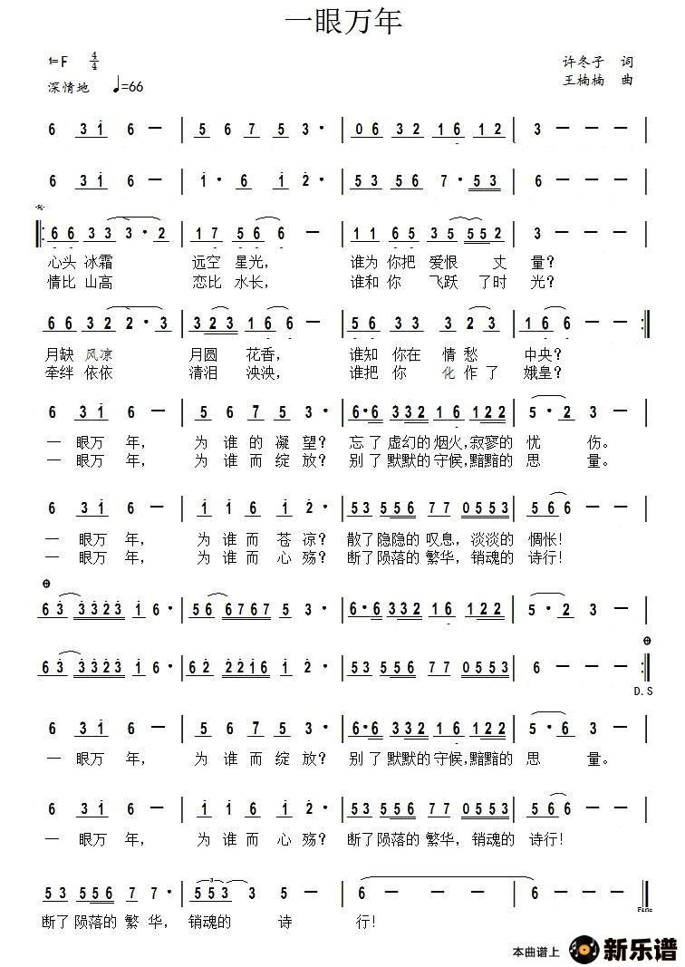 胡梅演唱的一眼万年歌词,一眼万年最新曲谱.