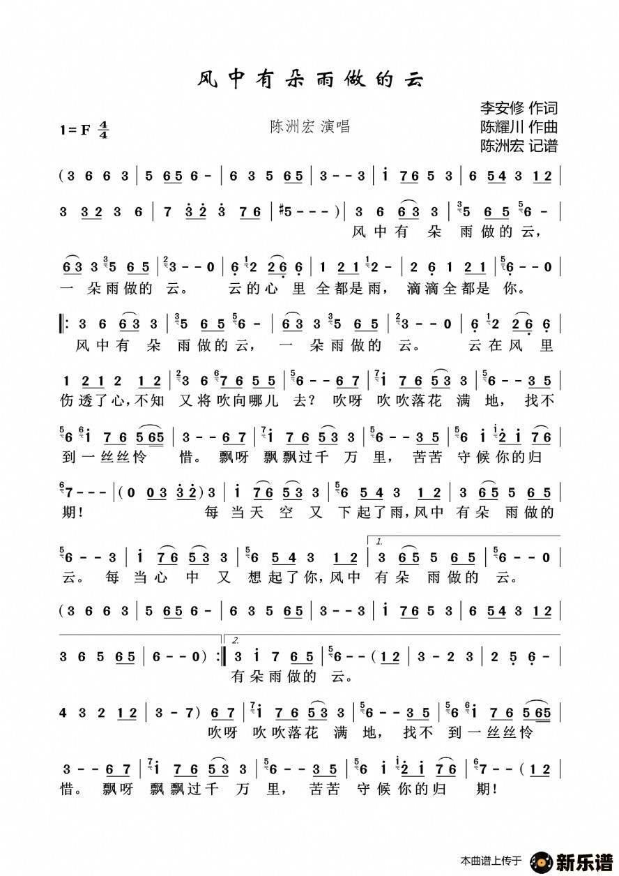 《风中有朵雨做的云》最新曲谱 -陈洲宏制谱