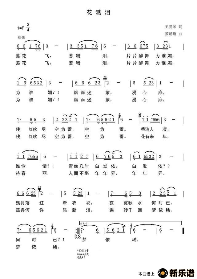 歌手媛媛演唱的花溅泪歌词,花溅泪最新曲谱.
