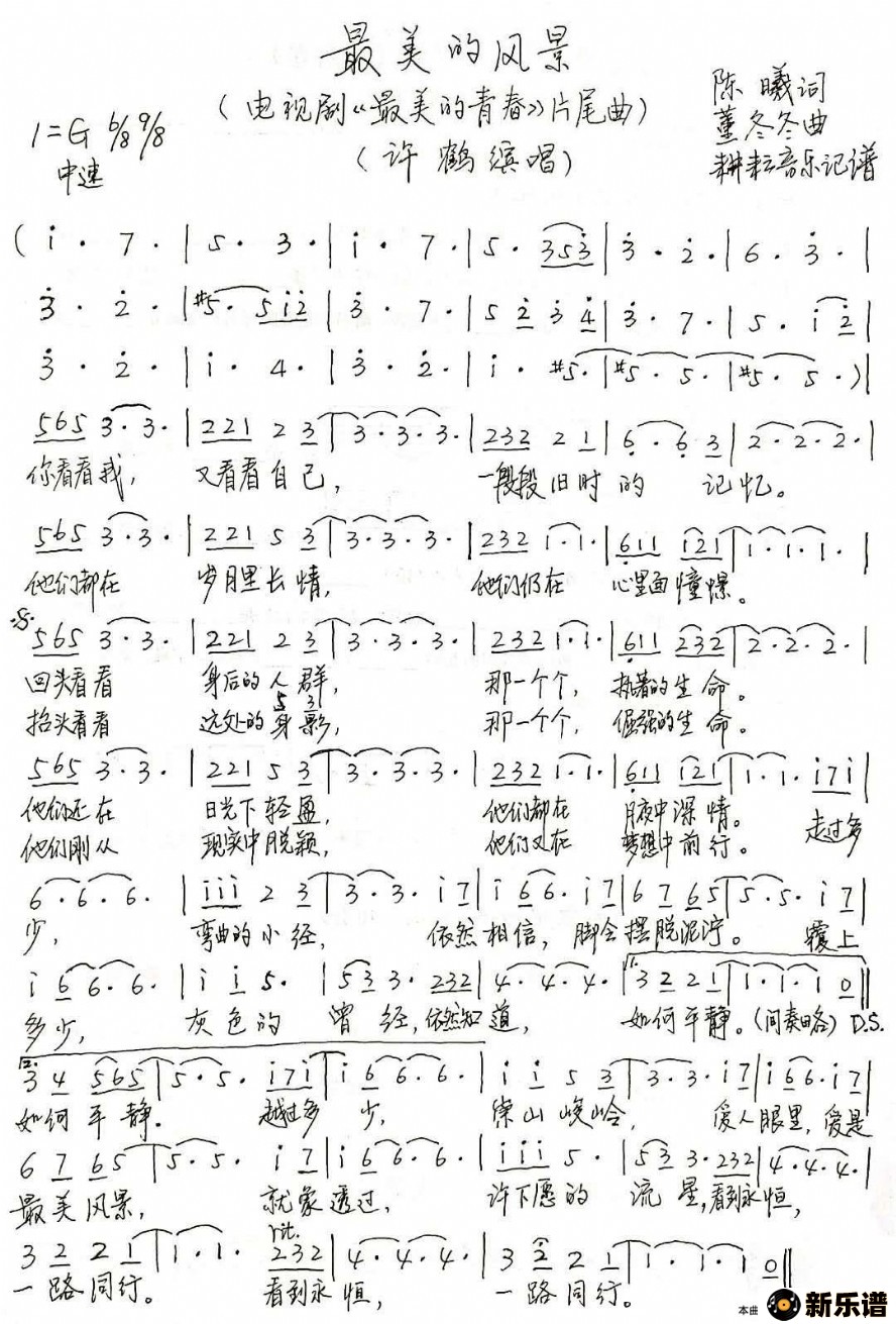 许鹤缤演唱的最美的风景歌词,最美的风景最新曲谱.