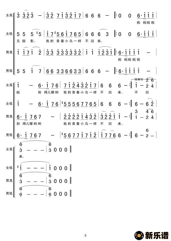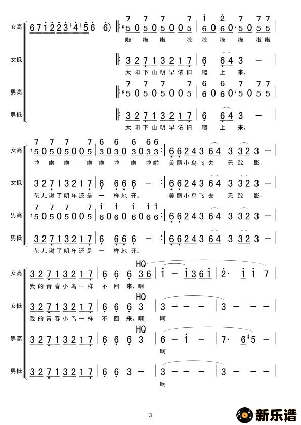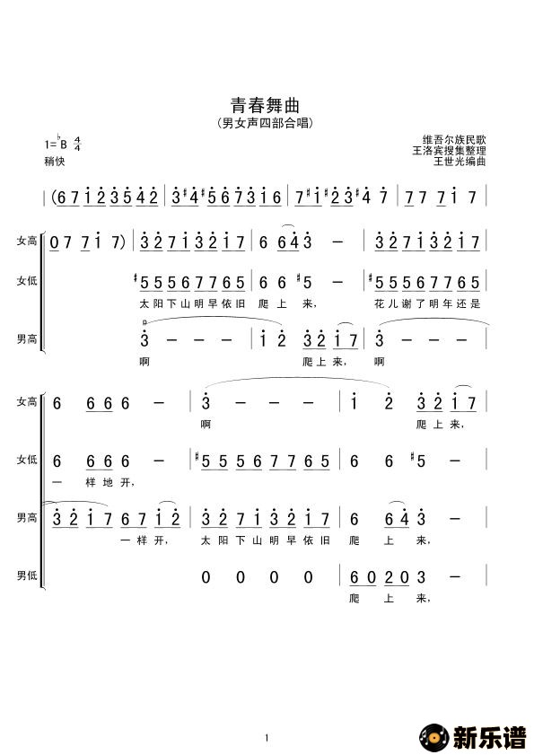 《青春舞曲》最新曲谱