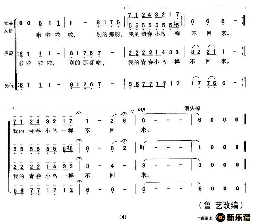 (四声部合唱、王世光编合唱版)