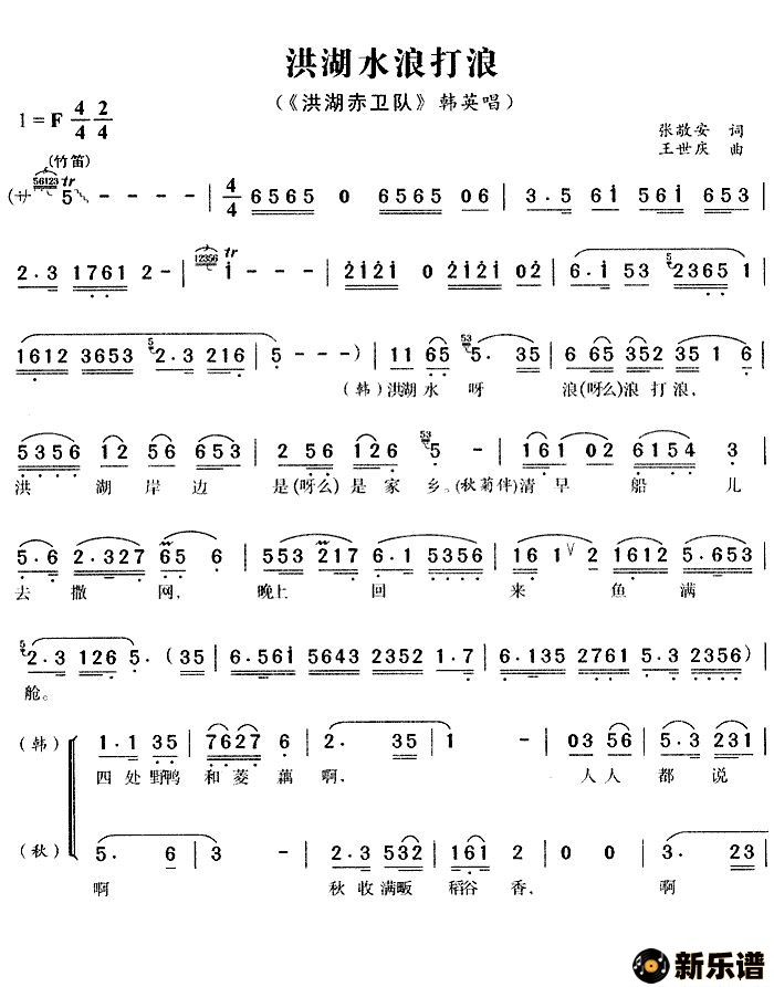 《洪湖水浪打浪》最新曲谱 王玉珍