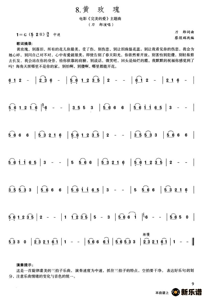 演唱的黄玫瑰歌词,黄玫瑰最新曲谱.