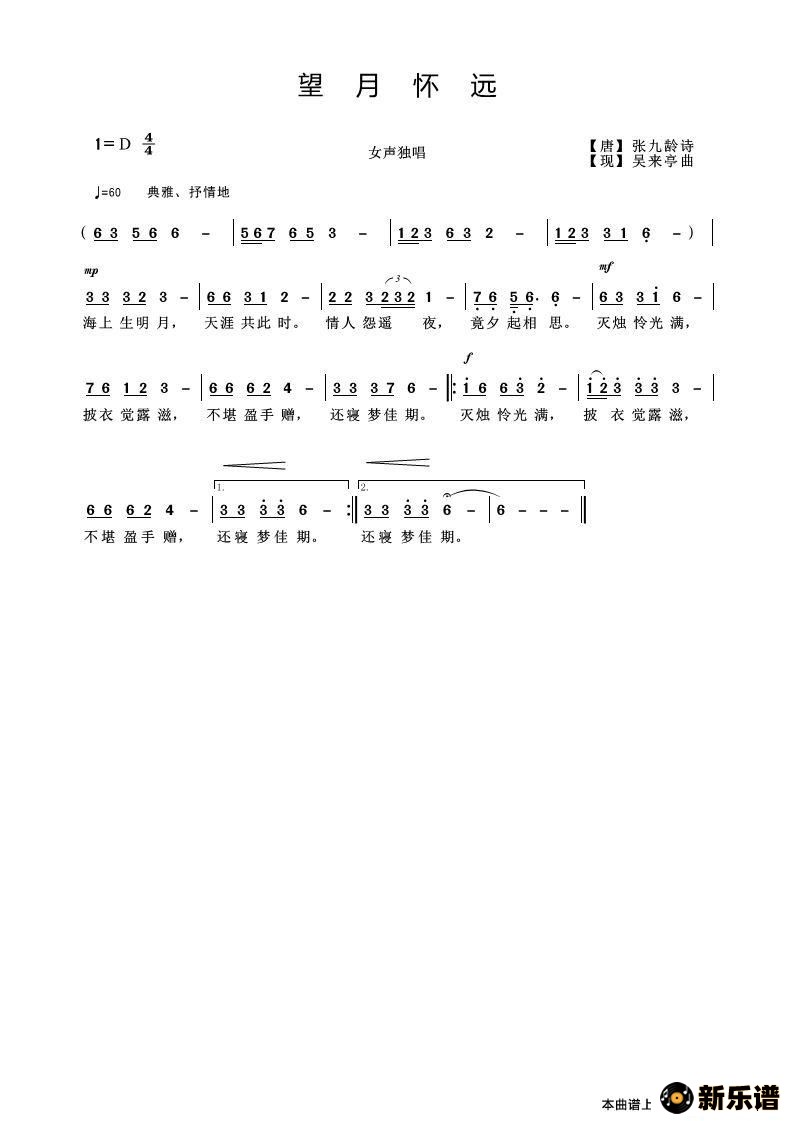 李思音演唱的望月怀远歌词,望月怀远最新曲谱.