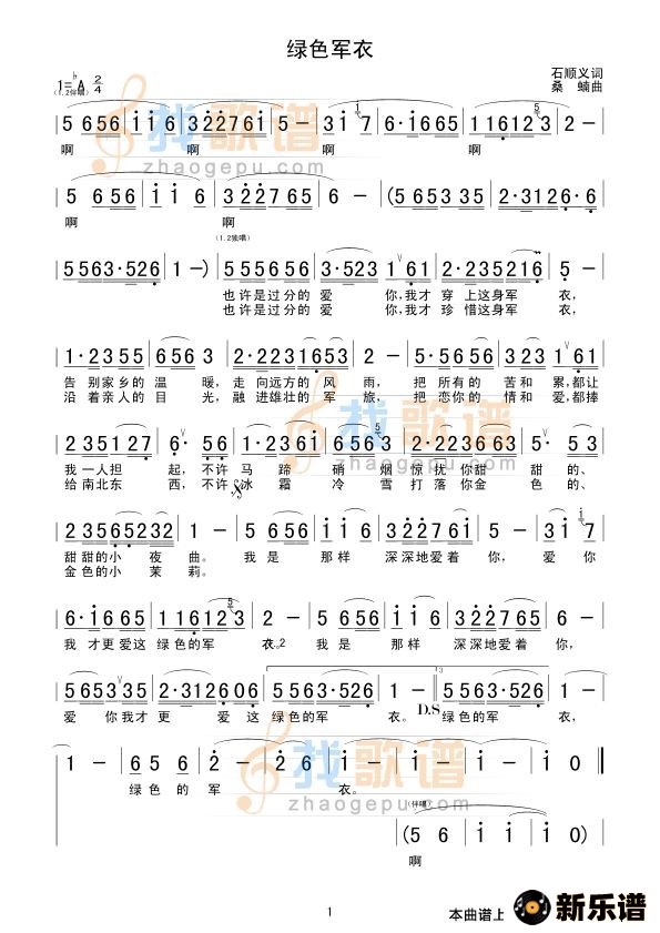 > 绿色军衣最新曲谱