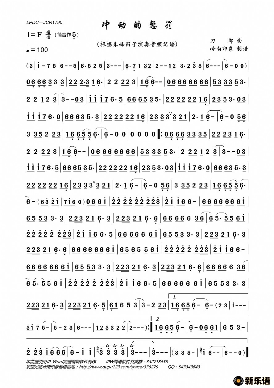 《冲动的惩罚》最新曲谱 朱峰-岭南印象制谱