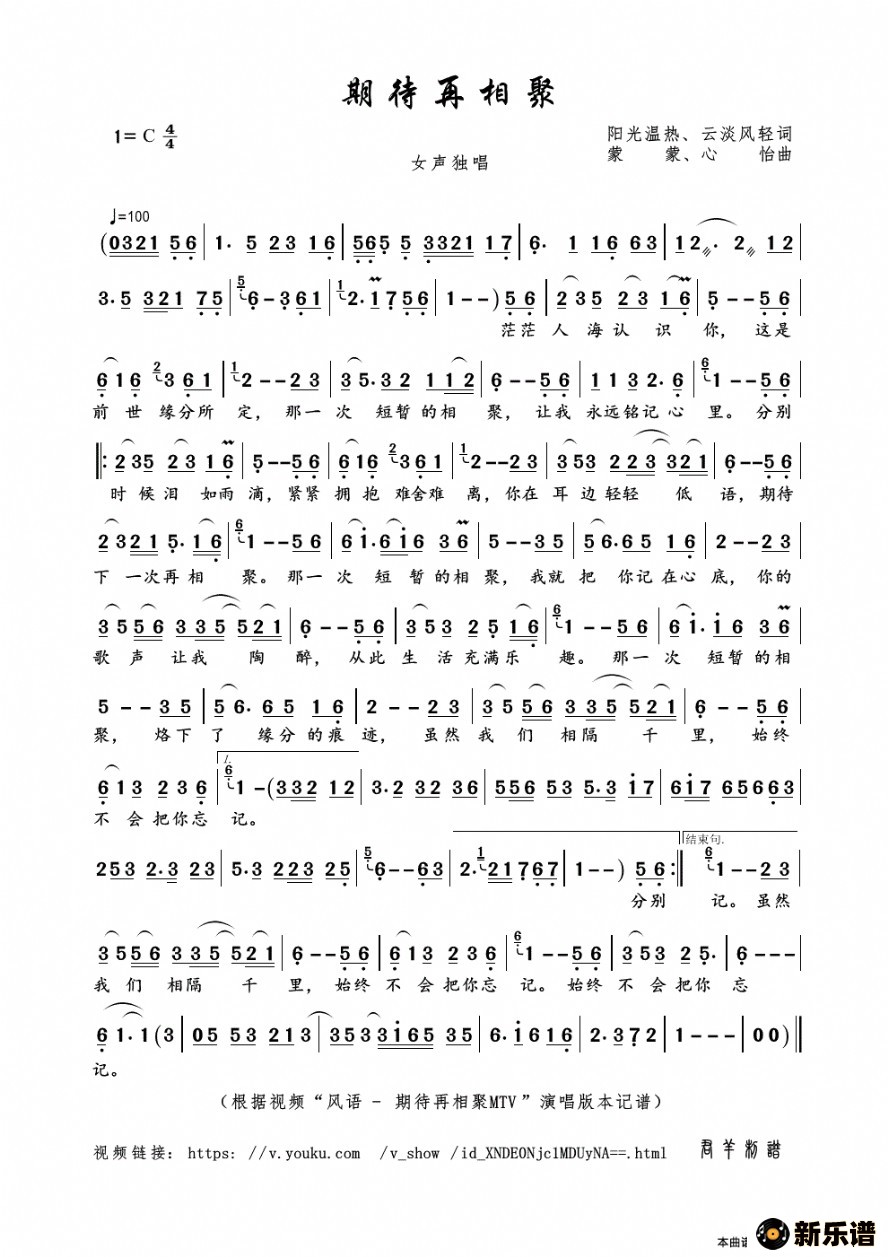 《期待再相聚》最新曲谱 风语-君羊制谱