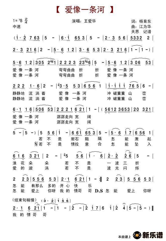 《爱像一条河》最新曲谱 王爱华-天恩制谱