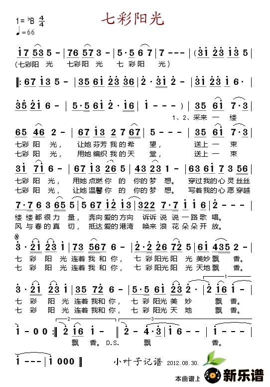 > 七彩阳光最新曲谱