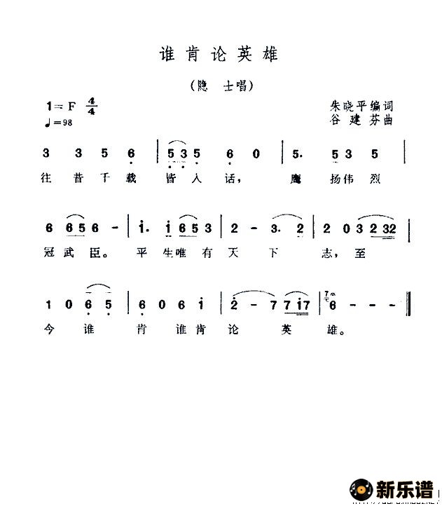 《谁肯论英雄(电视剧《三国演义》插曲)》最新曲谱 隐士