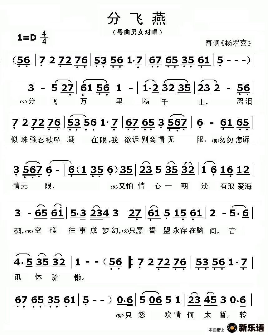 演唱的分飞燕歌词,分飞燕最新曲谱.