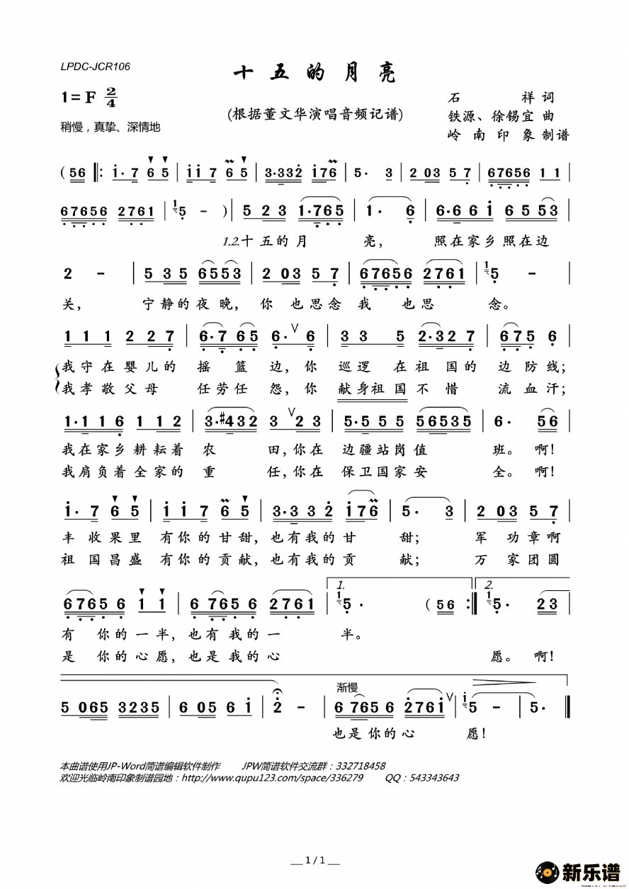 《十五的月亮》最新曲谱 董文华-岭南印象制谱