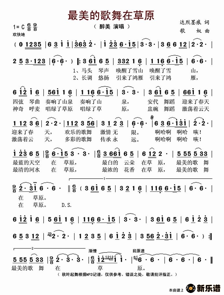 《最美的歌舞在草原》最新曲谱 醉美