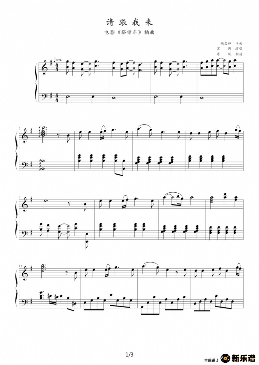 请跟我来(台湾影片《搭错车》插曲、二重唱)最新曲谱