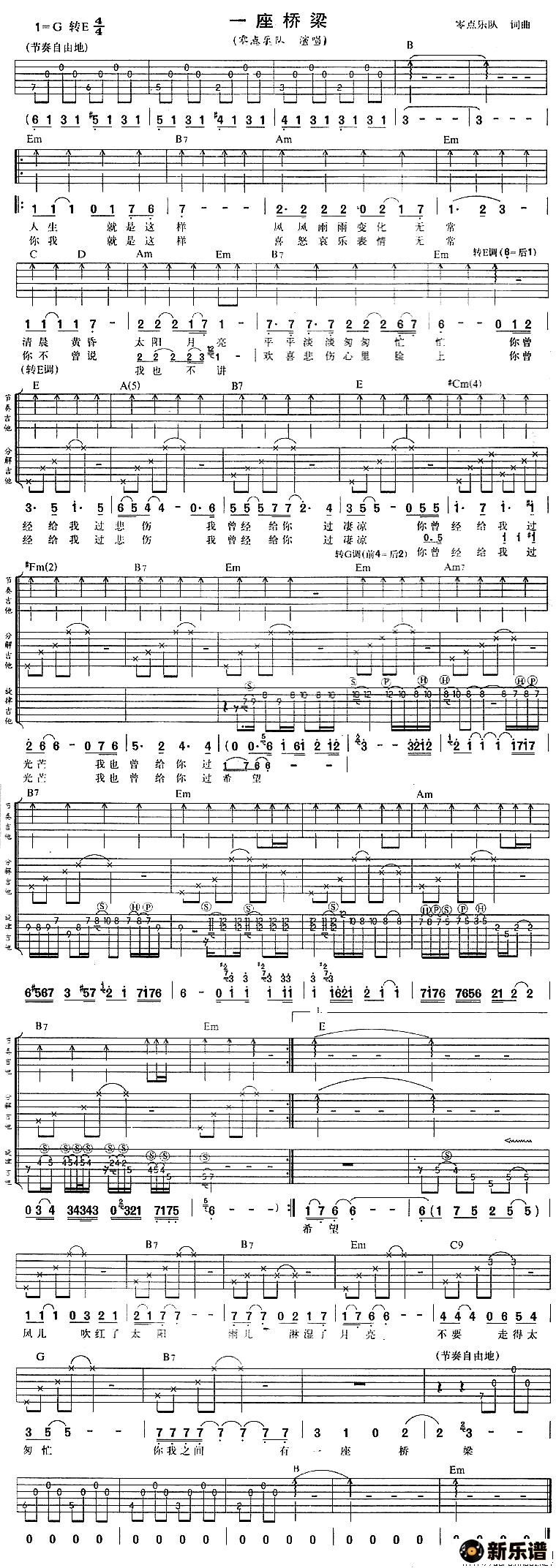 零点乐队演唱的一座桥梁歌词,一座桥梁最新曲谱.