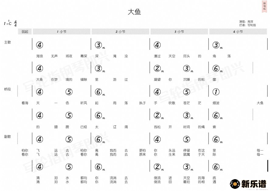 周深演唱的大鱼歌词,大鱼最新曲谱.