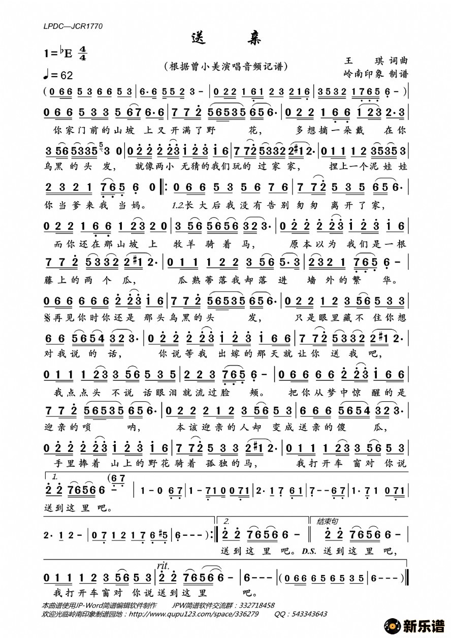 《送亲》最新曲谱 曾小美-岭南印象制谱
