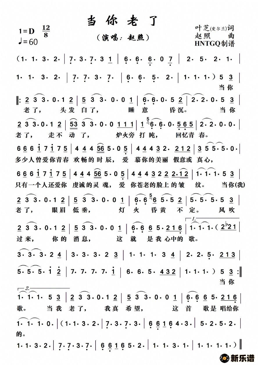 赵照演唱的当你老了歌词,当你老了最新曲谱.