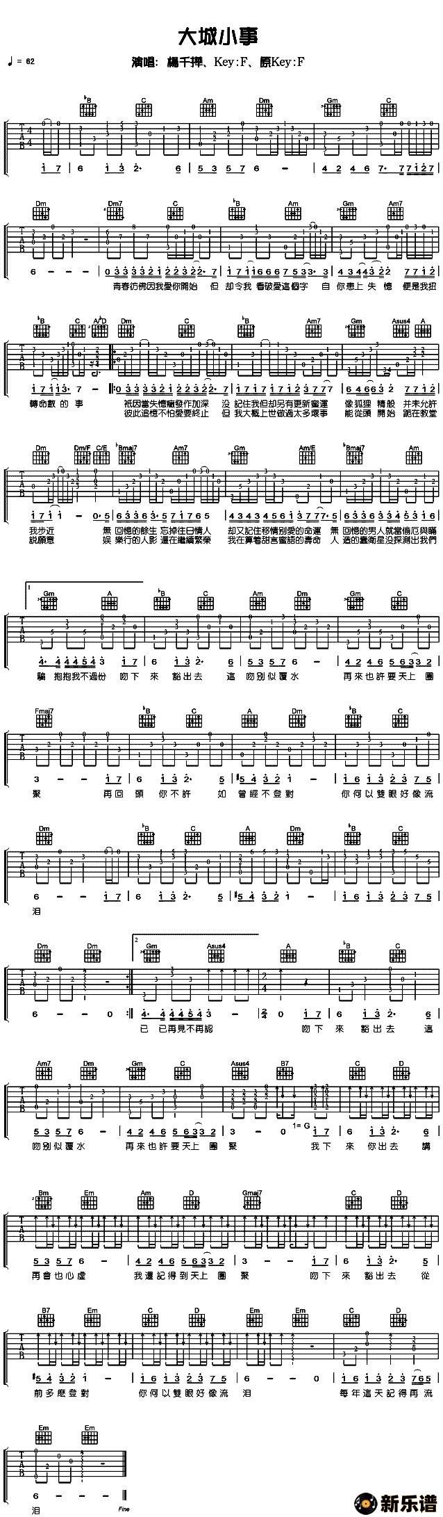 杨千桦演唱的大城小事歌词,大城小事最新曲谱.