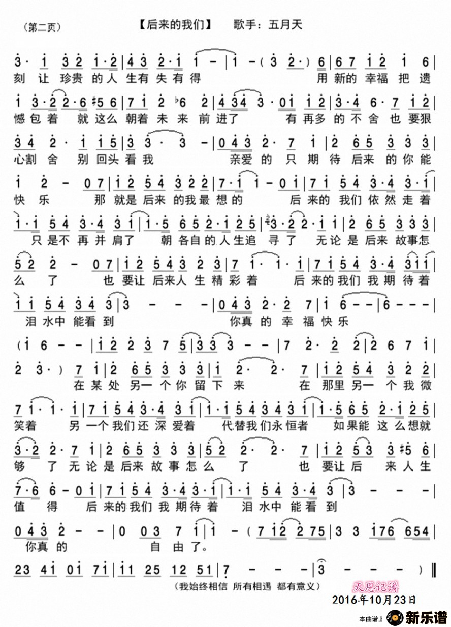 《后来的我们》最新曲谱 五月天-天恩制谱