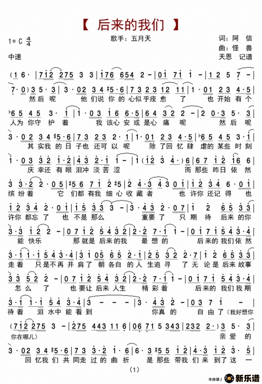 五月天演唱的后来的我们歌词,后来的我们最新曲谱.