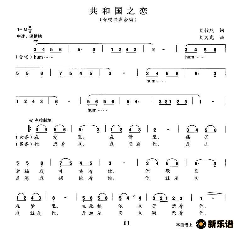 演唱的共和国之恋歌词,共和国之恋最新曲谱.