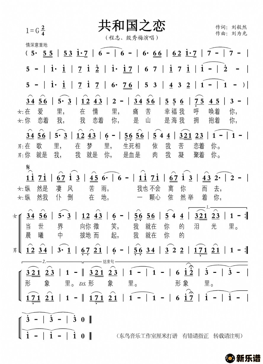 《共和国之恋》最新曲谱 程志、殷秀梅