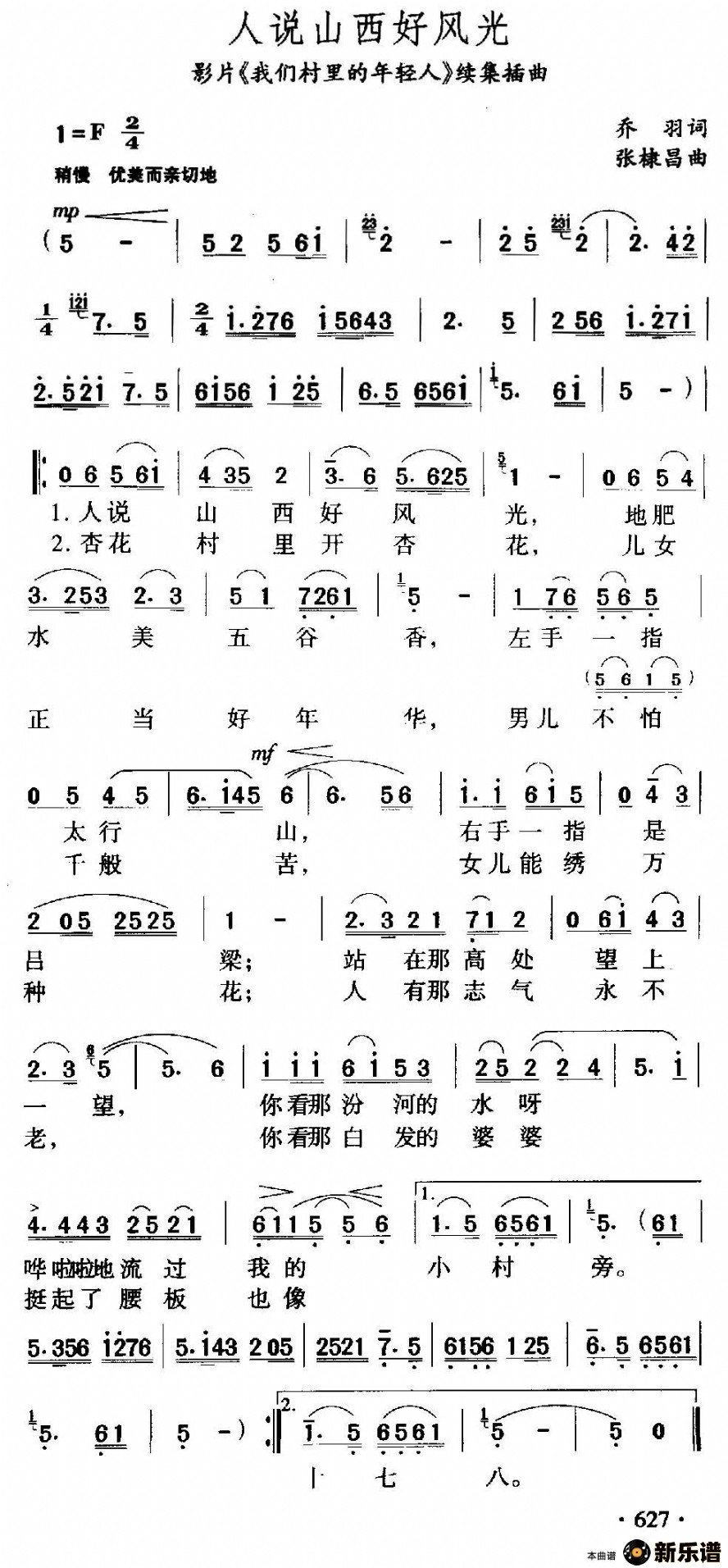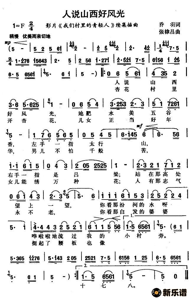 > 人说山西好风光(电影《我们村里的年青人》插曲)最新曲谱