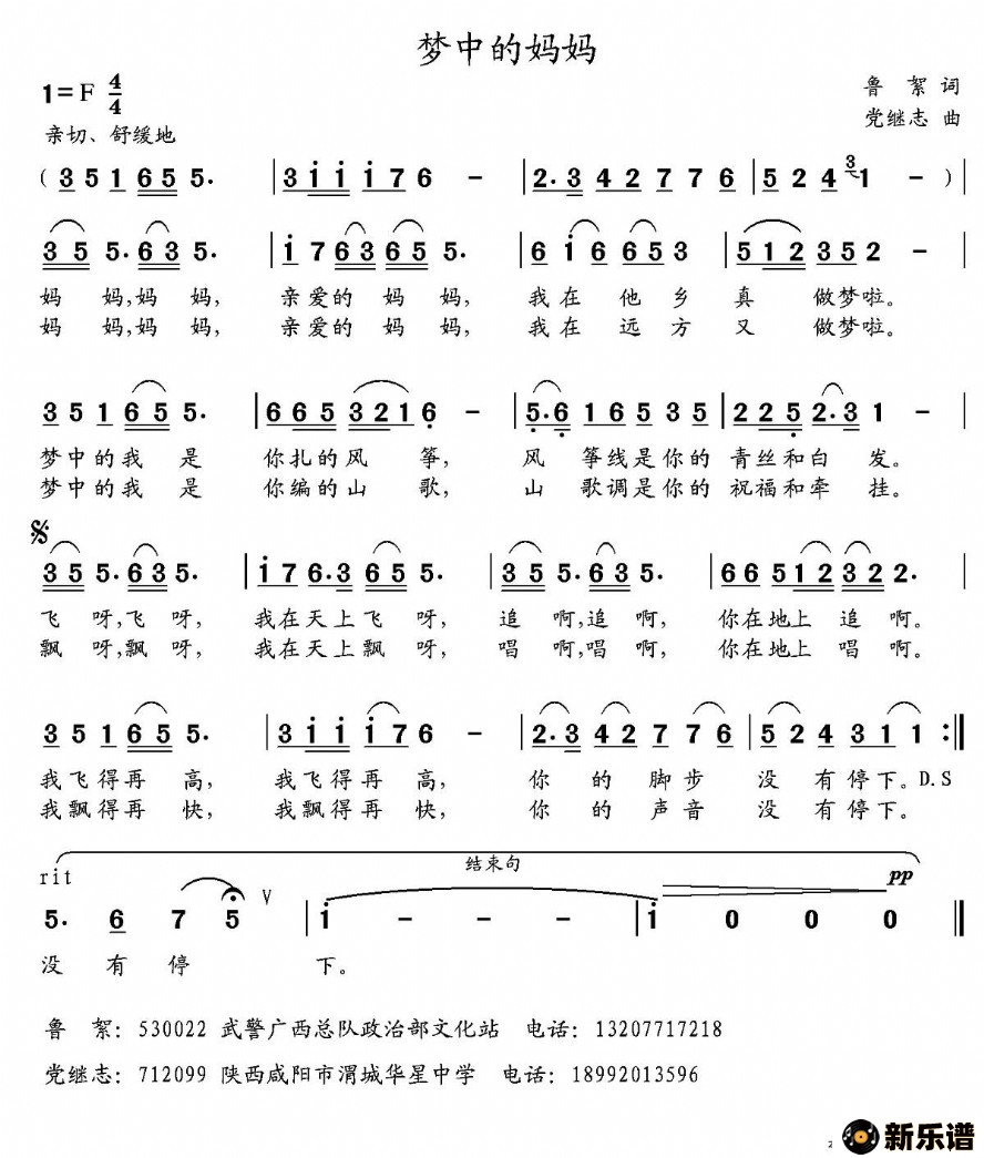 演唱的梦中的妈妈歌词,梦中的妈妈最新曲谱.