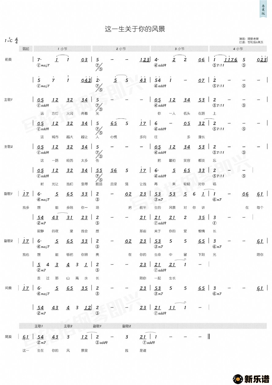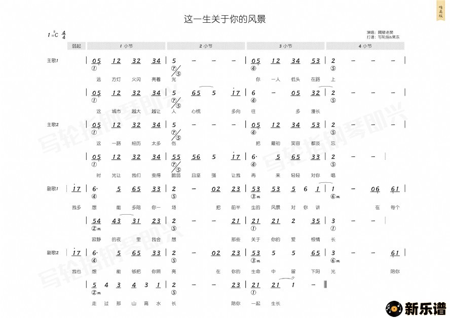 《这一生关于你的风景》最新曲谱 隔壁老樊