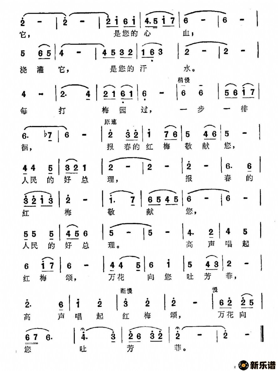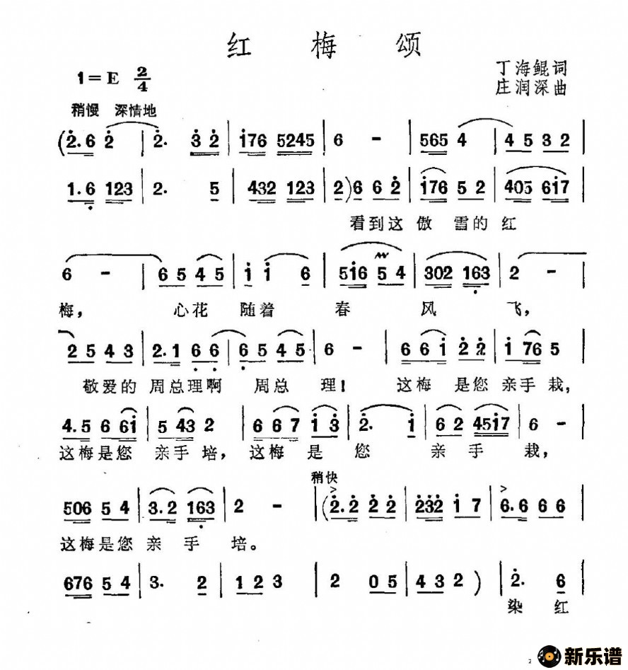 演唱的红梅颂歌词,红梅颂最新曲谱.