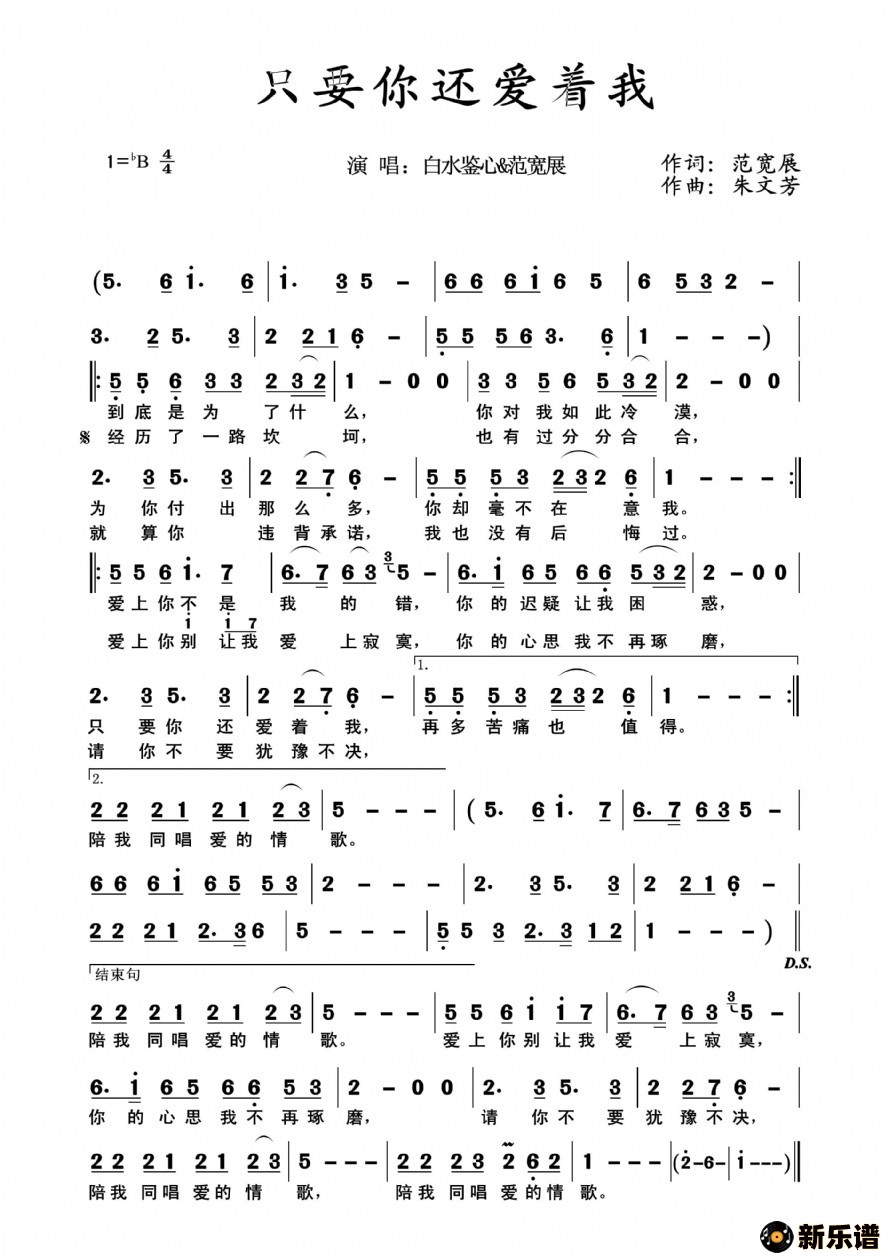 《只要你还爱着我》最新曲谱 白水鉴心/范宽展