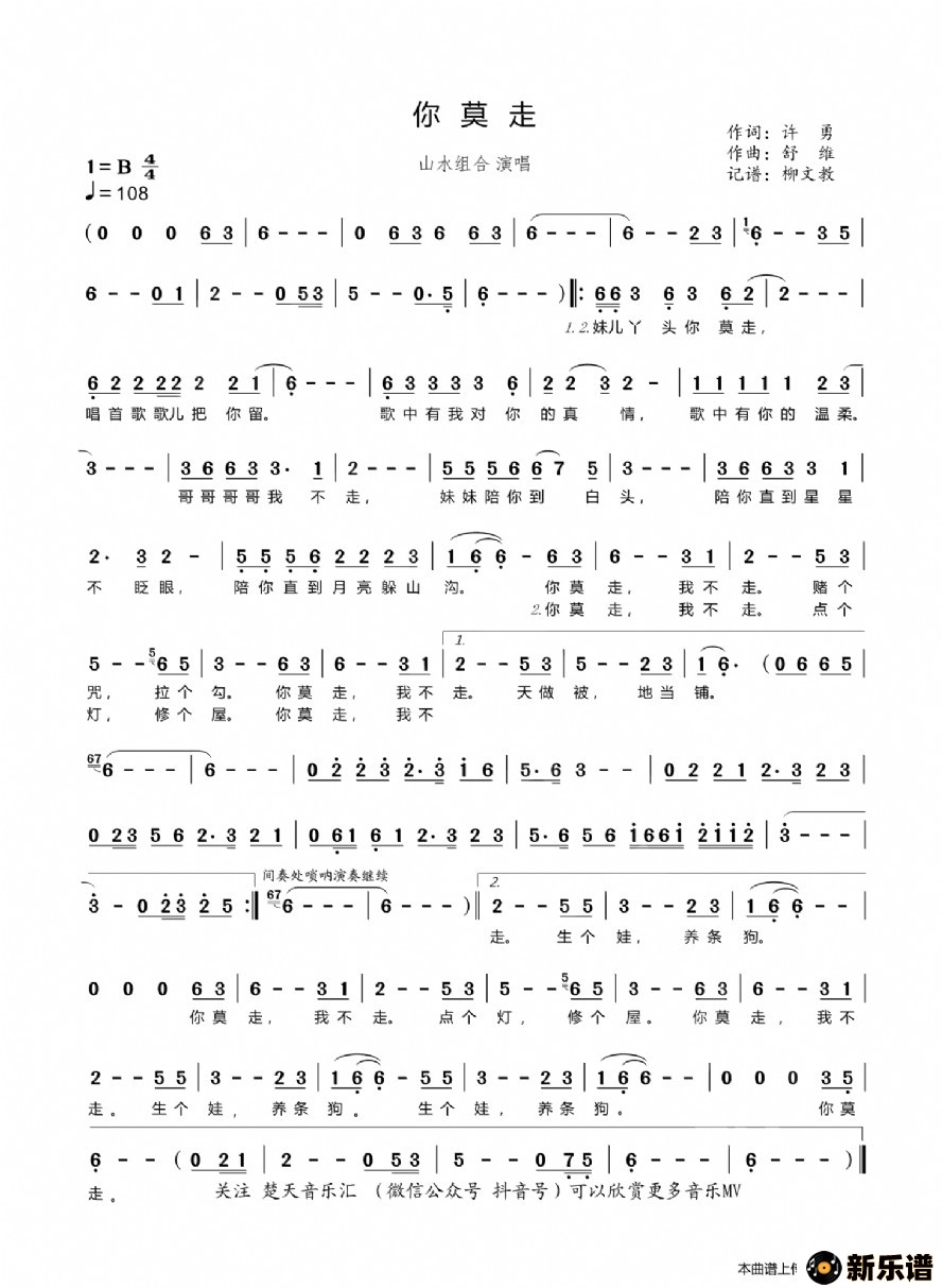 山水组合演唱的《你莫走》歌词,《你莫走》最新曲谱.