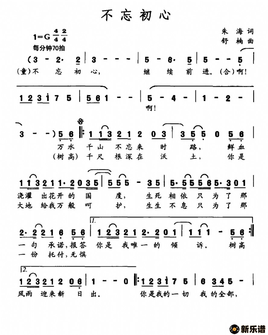 韩磊 谭维维演唱的不忘初心歌词,不忘初心最新曲谱.