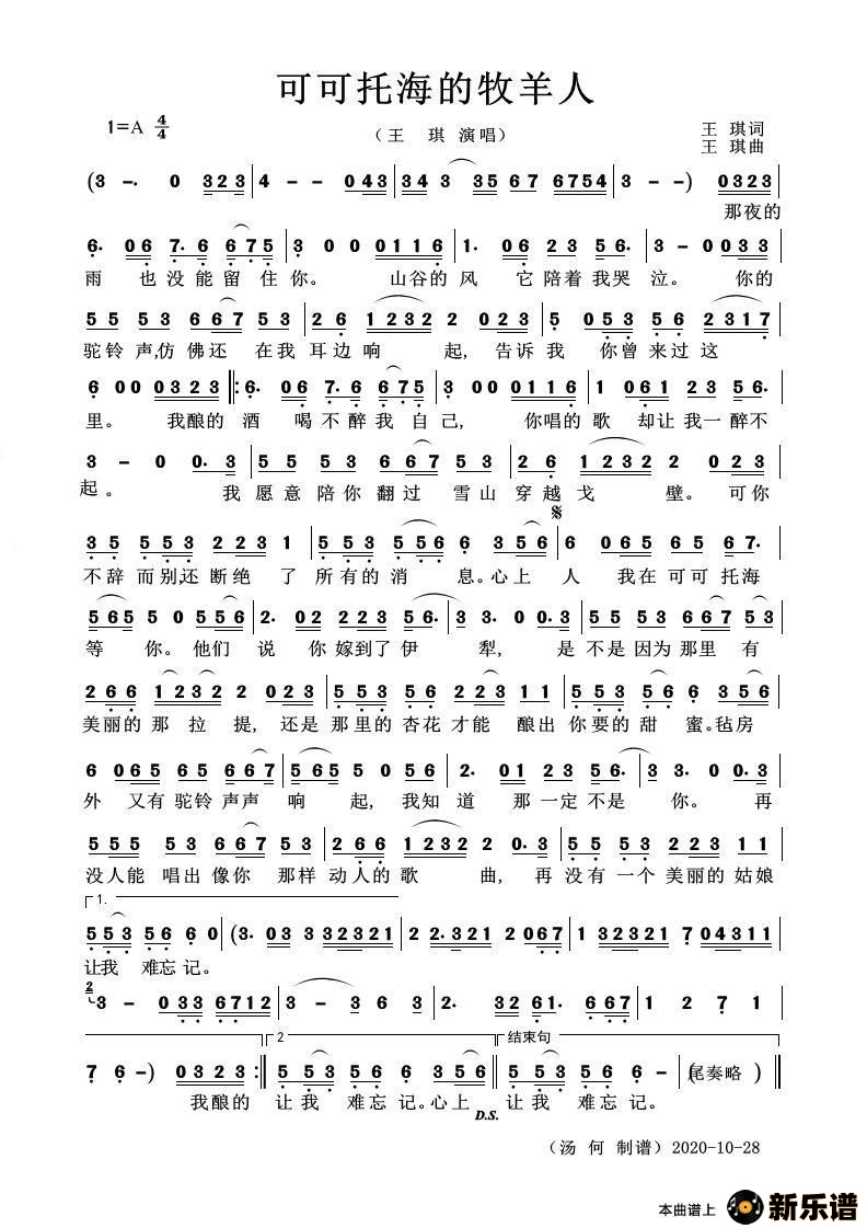未 知演唱的可可托海的牧羊人歌词,可可托海的牧羊人最新曲谱.