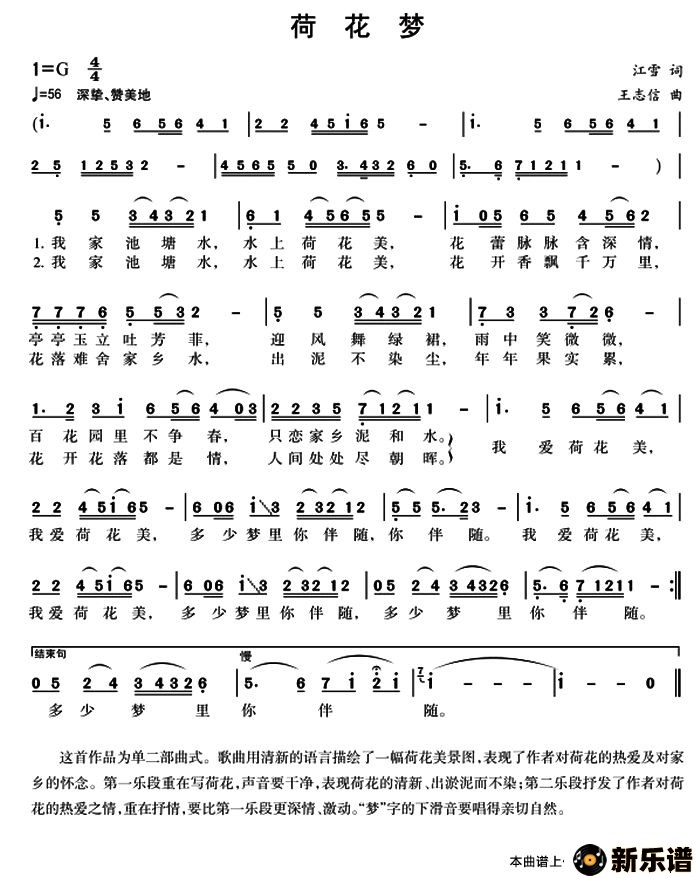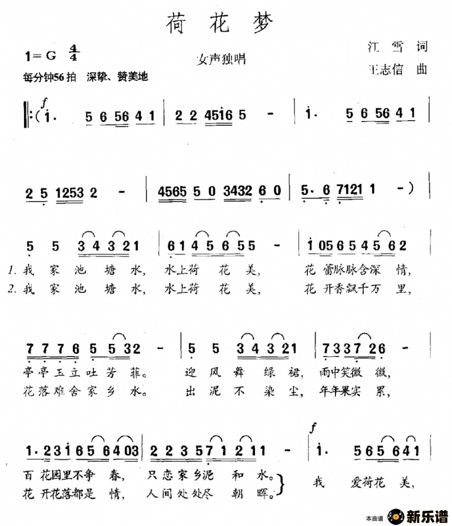 刘春梅演唱的荷花梦歌词,荷花梦最新曲谱.
