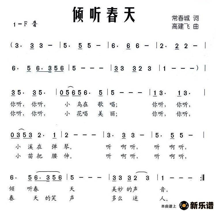 演唱的倾听春天歌词,倾听春天最新曲谱.