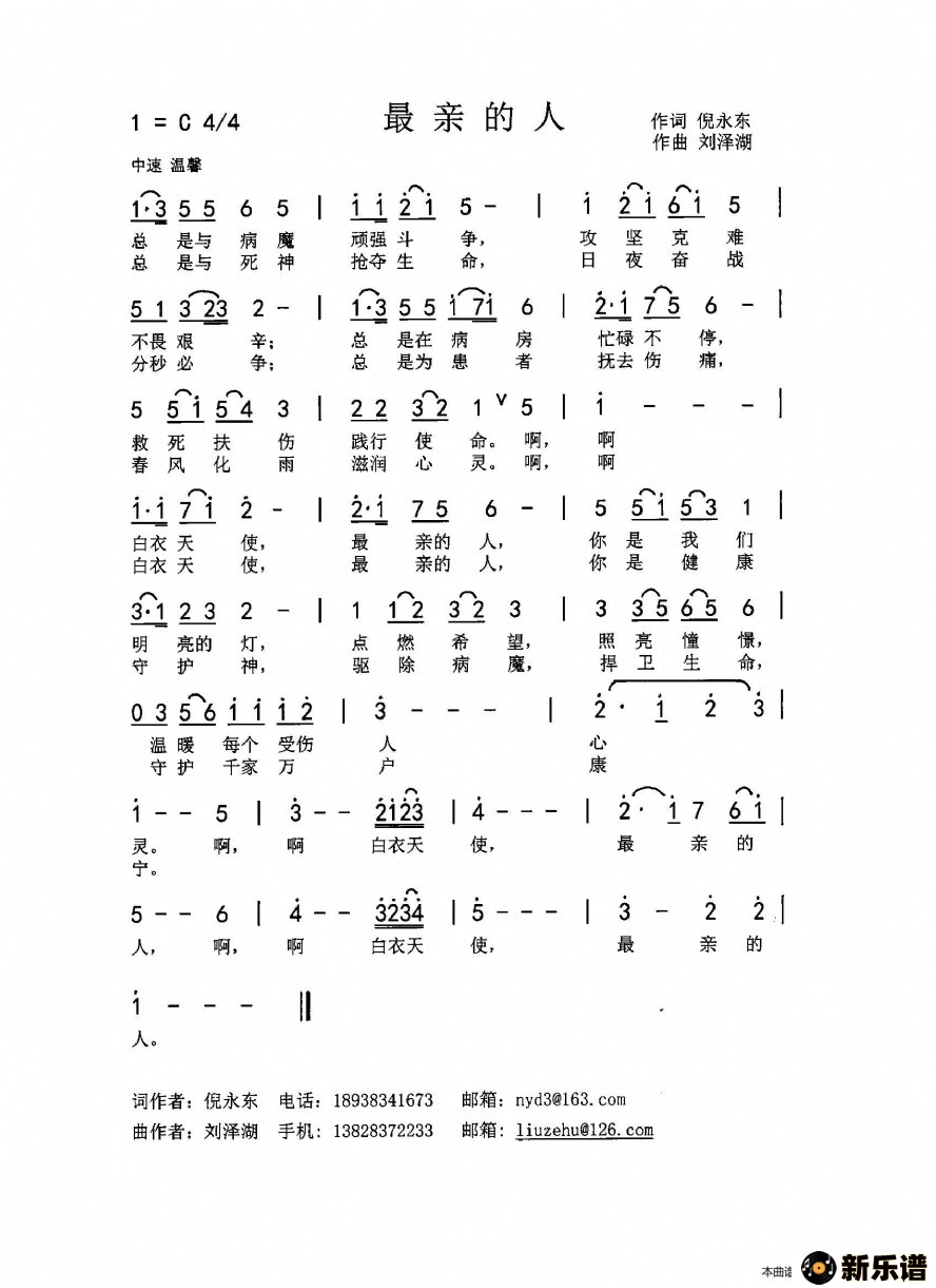 演唱的最亲的人歌词,最亲的人最新曲谱.
