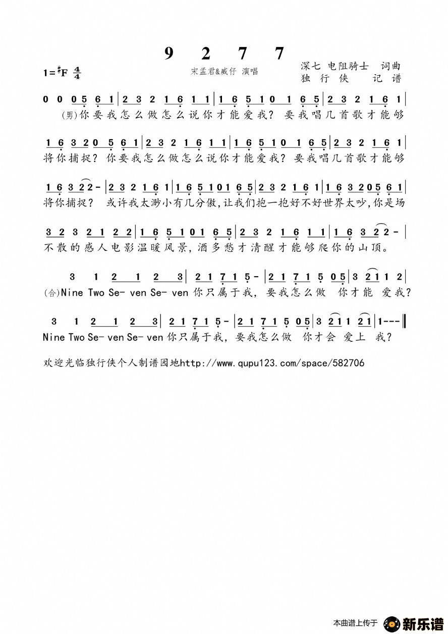 天颜组合演唱的9277歌词,9277最新曲谱.