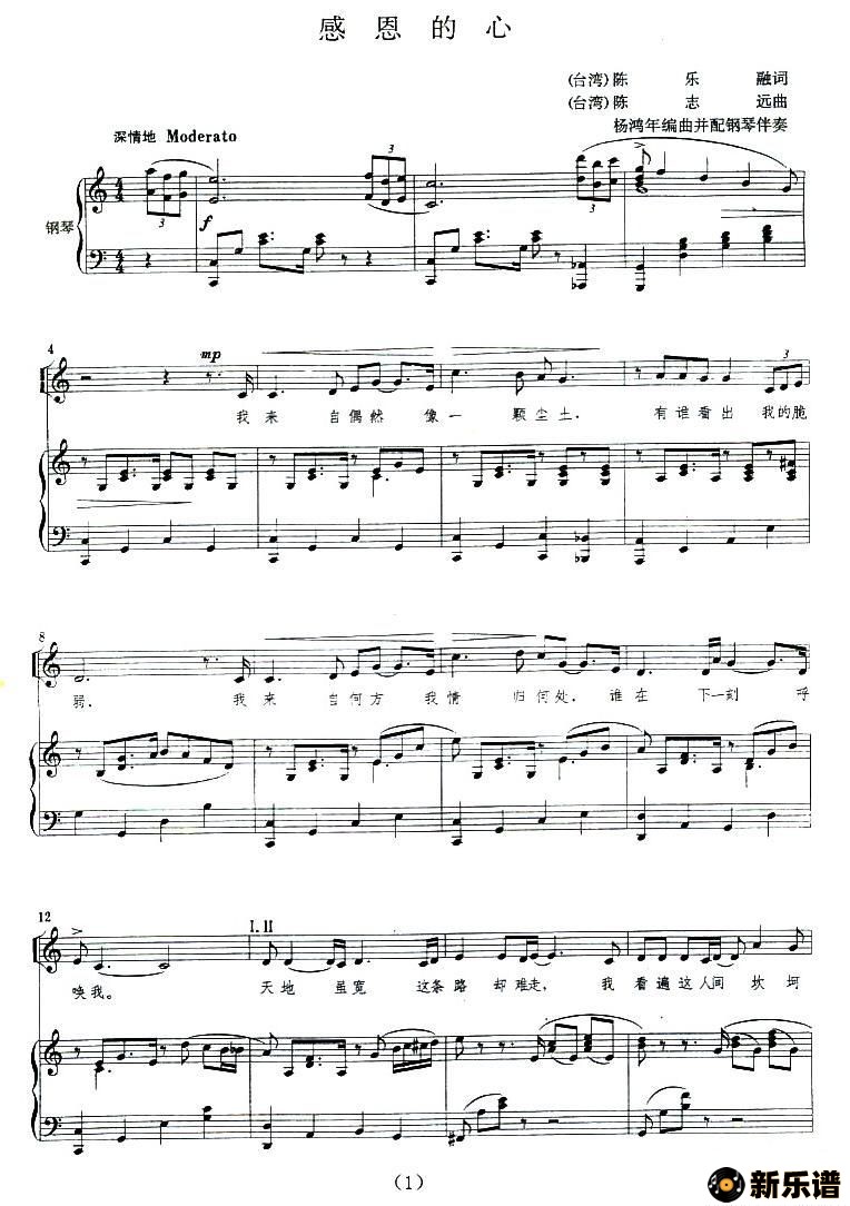 > 感恩的心最新曲谱